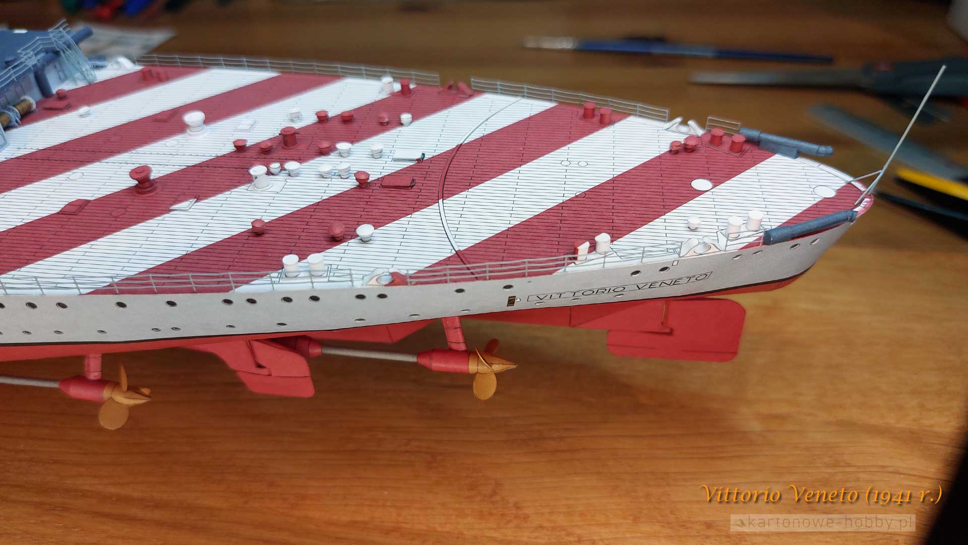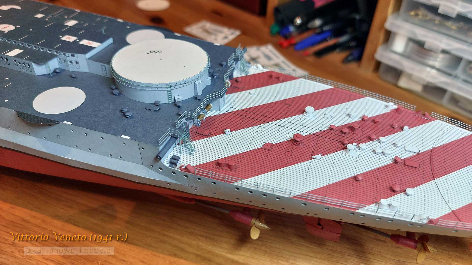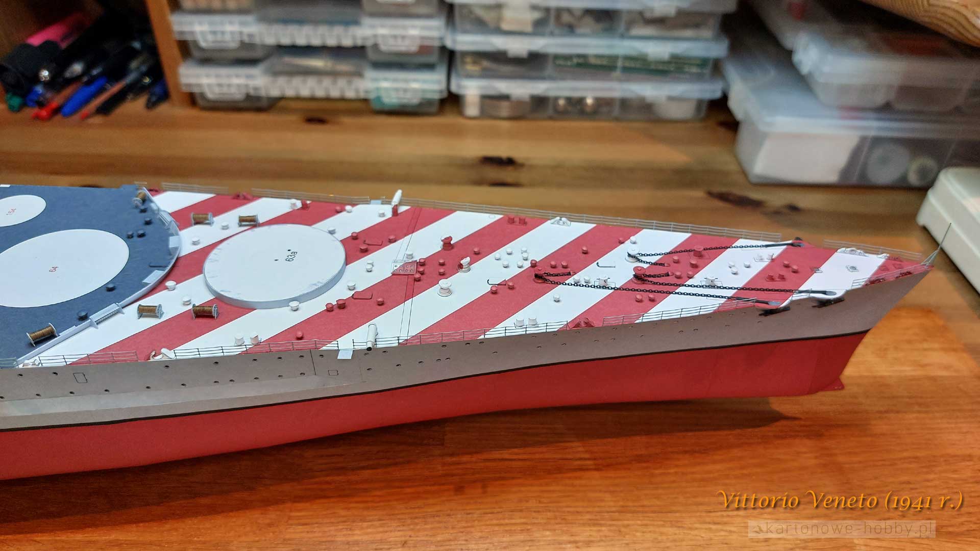Ahh : ) Dobrze się nie określiłem. Ale bardziej chodziło mi o kartonowość w sposobie nie używania gipsu czy innych podobnych specyfików. Natomiast jeśli chodzi o rywalizację, to lubię swój mały poziom i pomału odkrywać możliwości idące z każdym rozpoczętym modelem. Wyższym poziomem jest sam okręt Vittorio, bo nigdy wcześniej nie udało mi się podjąć modelu pancernika w takiej skali, nie licząc Bismarcka, którego musiałem niestety malować. No i tutaj raczej nie mam zamiaru prowadzić rywalizacji – każdy modelarz ma swoją wizję i swoje metody pracy. Żeby zachować tą moją „kartonowość” i trzymać się jednak standardu, to jeszcze o tym nie napisałem, ale zamierzam wykonać oryginalne czerwone poszycie części podwodnej mimo iż materiały z barwionki zamówiłem jakiś czas temu. Myślę, że może to oddalić pewne sporne prawdy historyczne związane z prawdziwym okrętem, ale na pewno nie oddali mnie od trzymania się standardu, jaki wyznaczył autor opracowania. Dzięki za wpis i do następnego : )