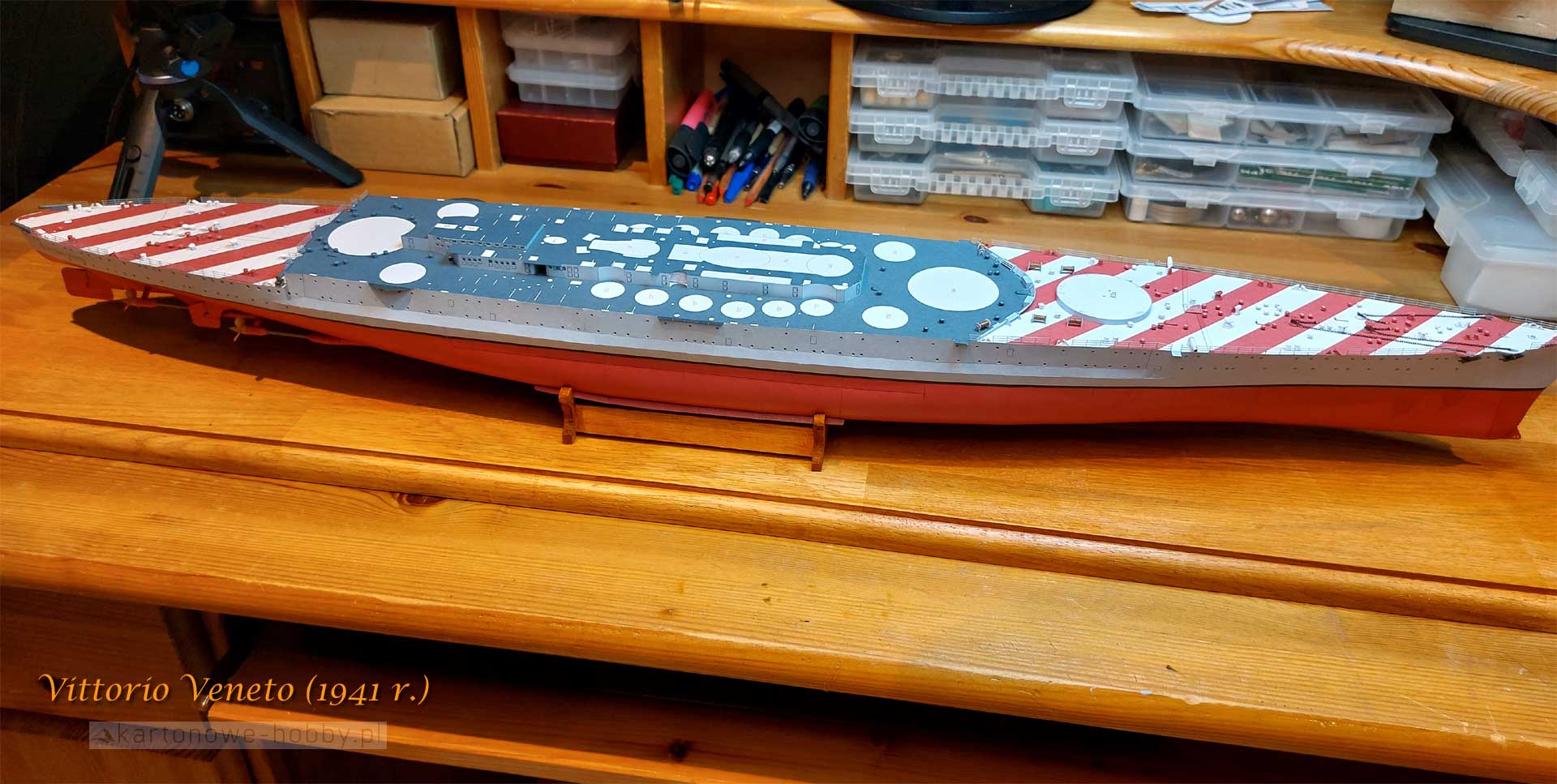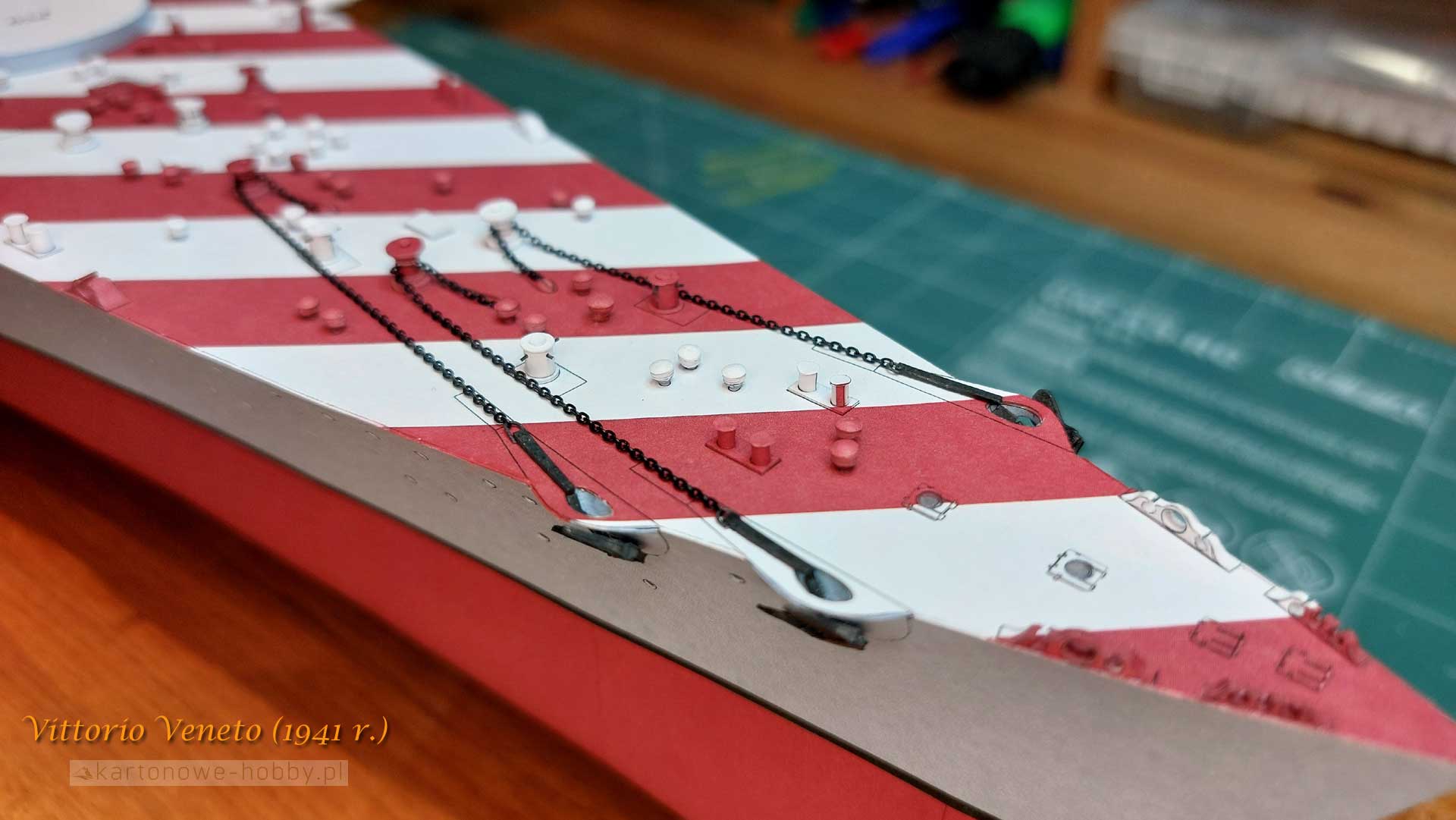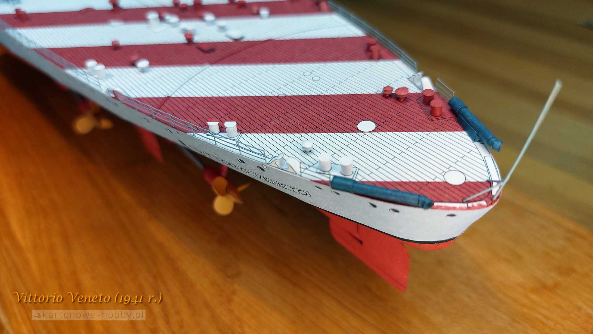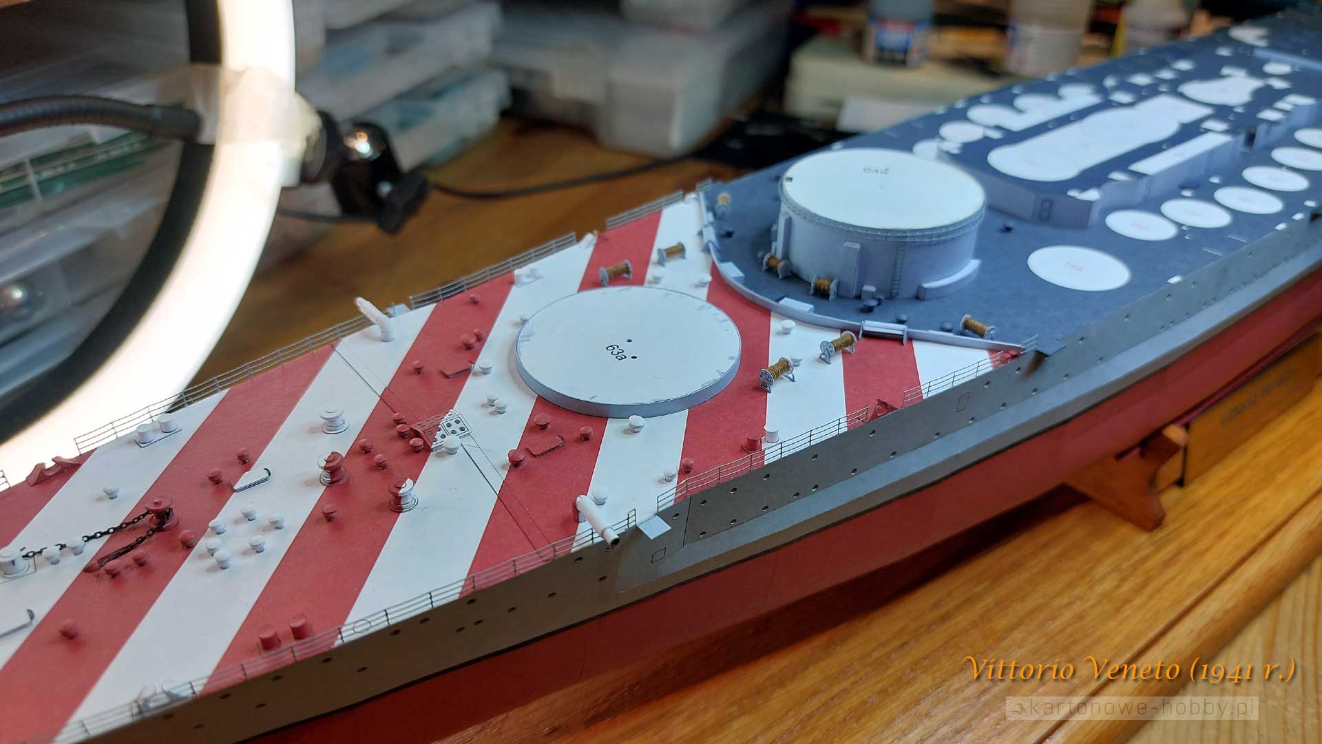 Ahh : ) Dobrze się nie określiłem. Ale bardziej chodziło mi o kartonowość w sposobie nie używania gipsu czy innych podobnych specyfików. Natomiast jeśli chodzi o rywalizację, to lubię swój mały poziom i pomału odkrywać możliwości idące z każdym rozpoczętym modelem. Wyższym poziomem jest sam okręt Vittorio, bo nigdy wcześniej nie udało mi się podjąć modelu pancernika w takiej skali, nie licząc Bismarcka, którego musiałem niestety malować. No i tutaj raczej nie mam zamiaru prowadzić rywalizacji – każdy modelarz ma swoją wizję i swoje metody pracy. Żeby zachować tą moją „kartonowość” i trzymać się jednak standardu, to jeszcze o tym nie napisałem, ale zamierzam wykonać oryginalne czerwone poszycie części podwodnej mimo iż materiały z barwionki zamówiłem jakiś czas temu. Myślę, że może to oddalić pewne sporne prawdy historyczne związane z prawdziwym okrętem, ale na pewno nie oddali mnie od trzymania się standardu, jaki wyznaczył autor opracowania. Dzięki za wpis i do następnego : )